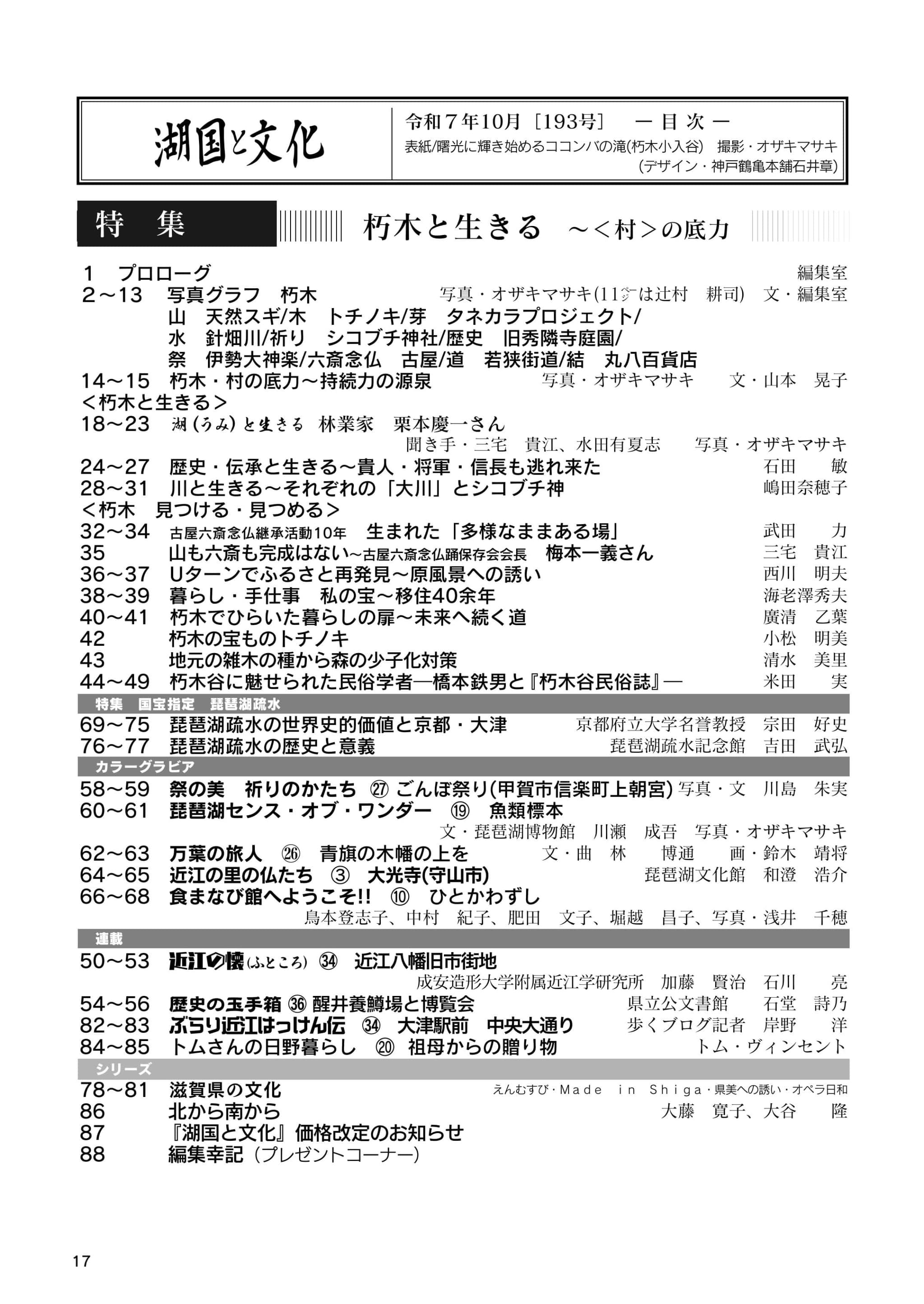 湖国と文化 第193号 「朽木と生きる ~〈村〉の底力」