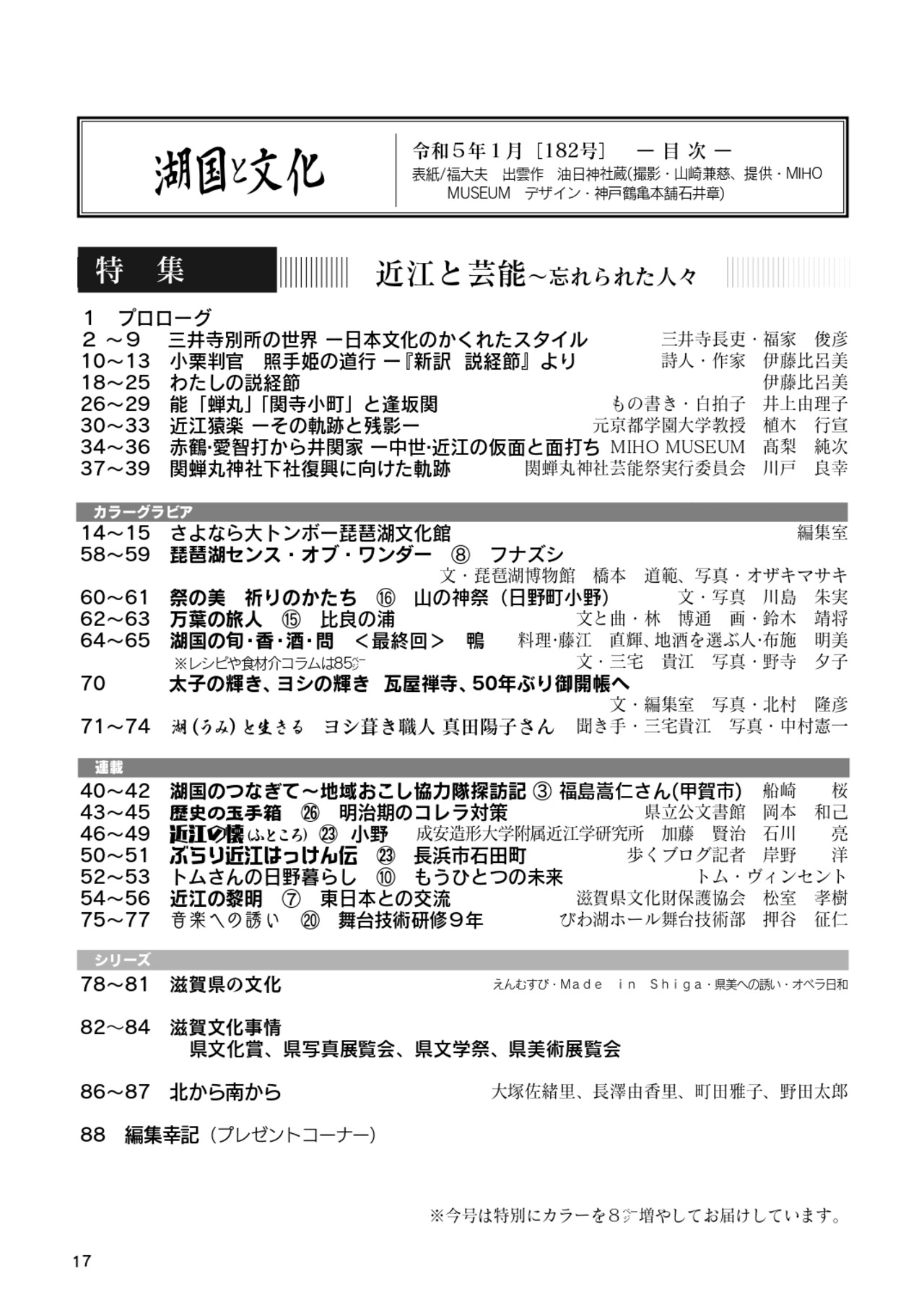 湖国と文化 第182号 「特集 近江と芸能~忘れられた人々」