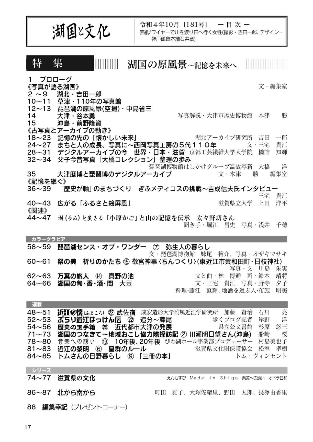 湖国と文化 第181号 「 特集 湖国の原風景~記憶を未来へ」