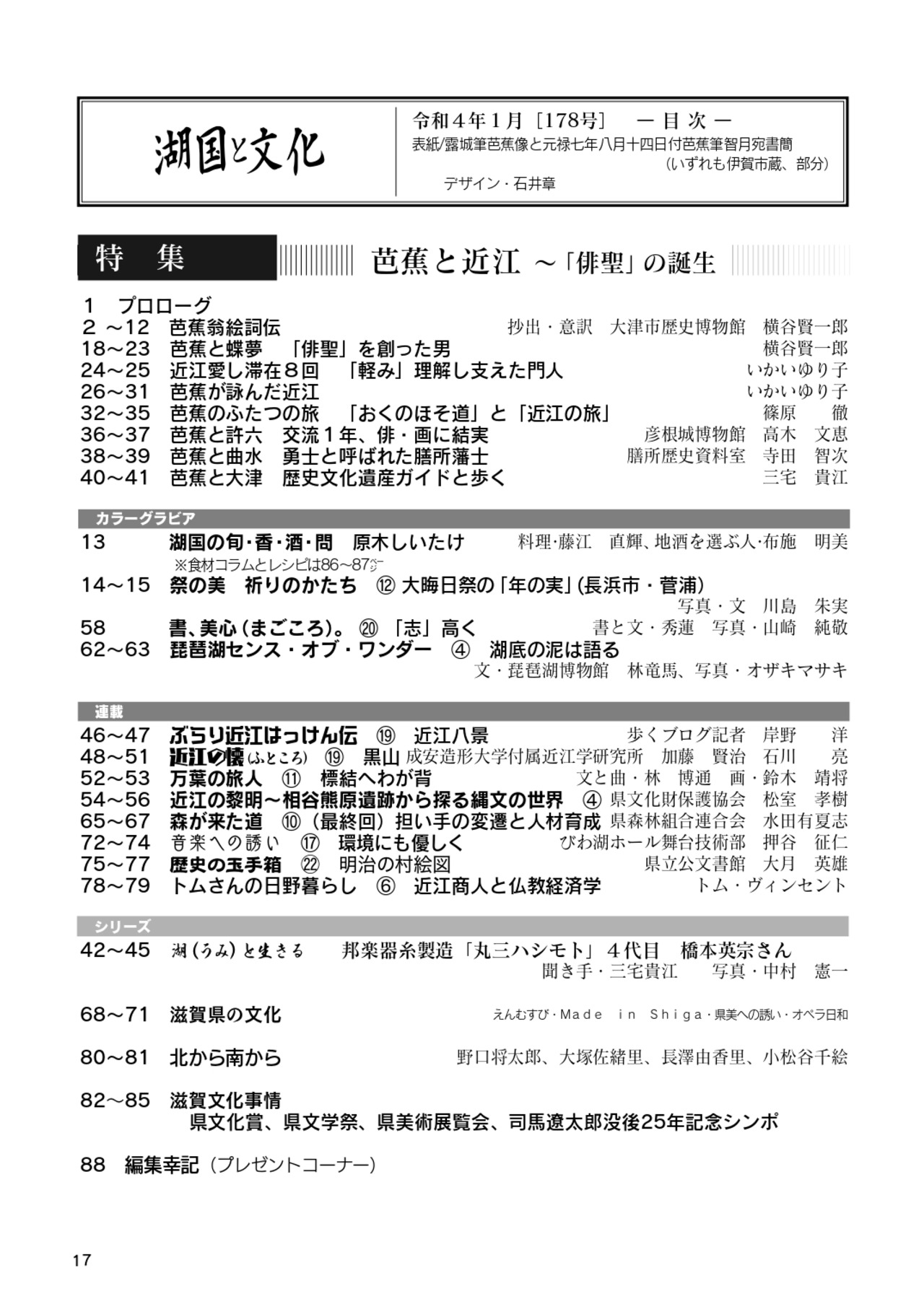 湖国と文化 第178号 「特集 芭蕉と近江~「俳聖」の誕生」
