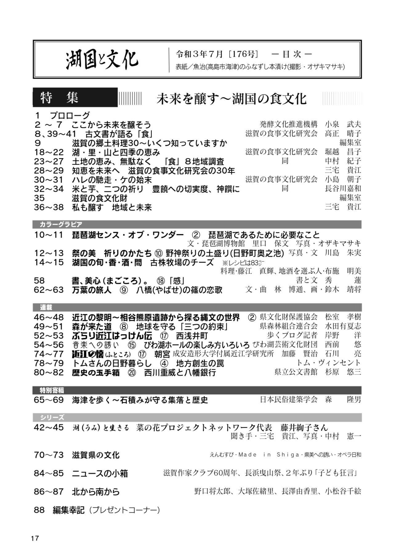 湖国と文化 第176号 「特集 未来を醸す~湖国の食文化」