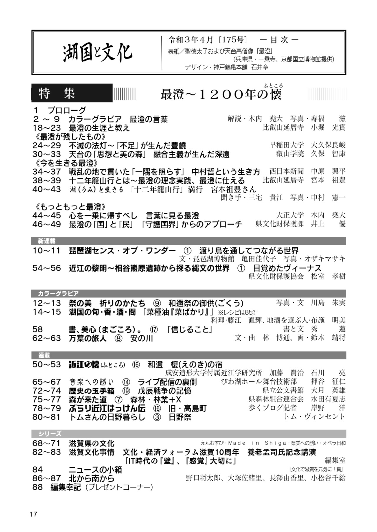 湖国と文化 第175号 「最澄~1200年の懐(ふところ)」